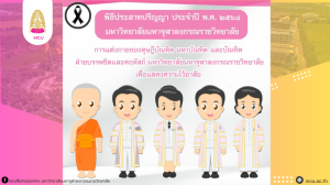 ๗ พฤศจิกายน ๒๕๖๘ เวลา ๐๙.๓๐ น. มหาวิทยาลัยมหาจุฬาลงกรณราชวิทยาลัย (มจร) จัดพิธีบำเพ็ญกุศลทักษิณานุประทานเพื่ออุทิศถวายพระราชกุศลแด่ สมเด็จพระนางเจ้าสิริกิติ์ พระบรมราชินีนาถ พระบรมราชชนนีพันปีหลวง “ปัณรสมวาร” (๑๕ วัน)...